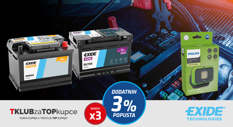 Kupnjom Exide akumulatora - poklon Philips ručna LED lampa
